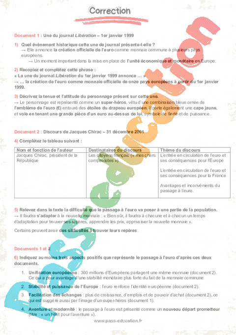 6) Indiquez au moins trois aspects positifs que représente le passage à l’euro d’après ces deux documents.