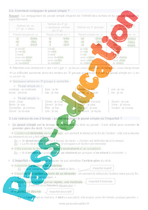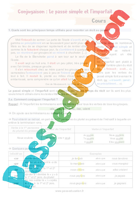 Cours niveau 4ème sur le passé simple et l’imparfait.