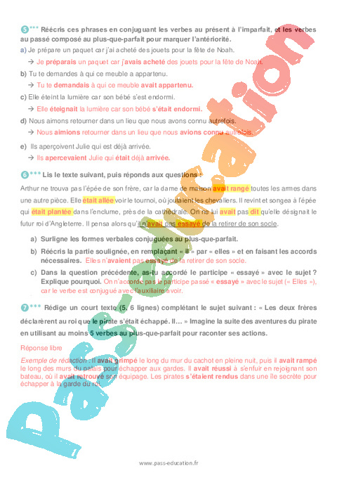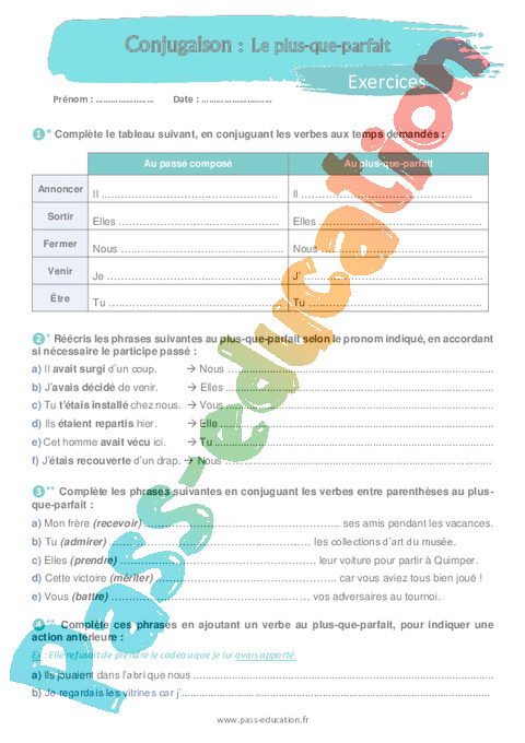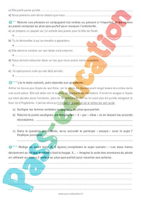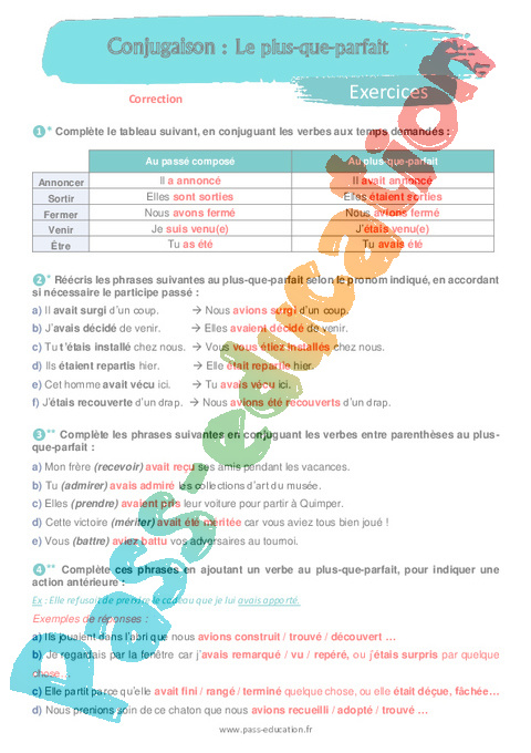 Exercices 5ème Le plus-que-parfait pdf