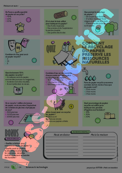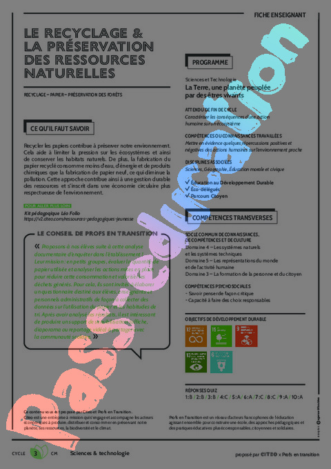 Le recyclage et la préservation des ressources naturelles CM1 CM2 – Citéo pdf