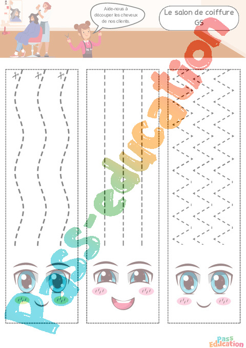 Le salon de coiffure – S’entraîner à découper pour mieux maîtriser le geste graphique, un premier pas vers l’écriture en Grande Section.
