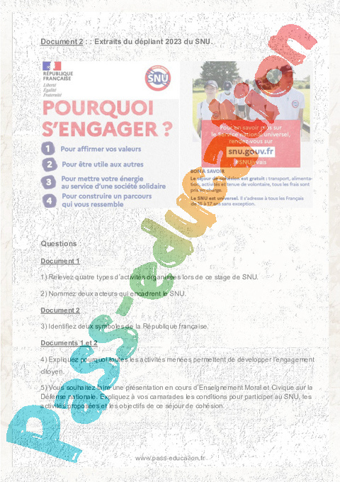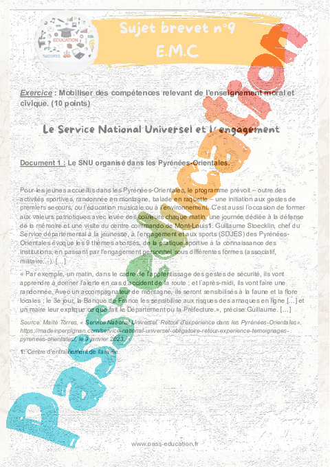 9 Le Service National Universel et l’engagement Sujets et corrigés du Brevet EMC pdf