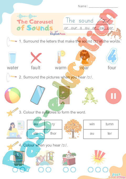 Carousel of Sounds – CP CE1 CE2 CM1 CM2 – Vidéo interactive + Fiche sur le son : /ɔː/ or our a au ar aw oar.