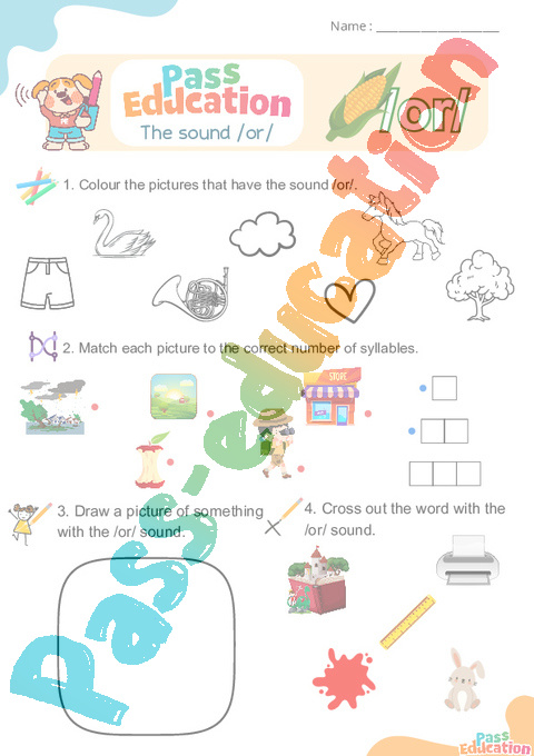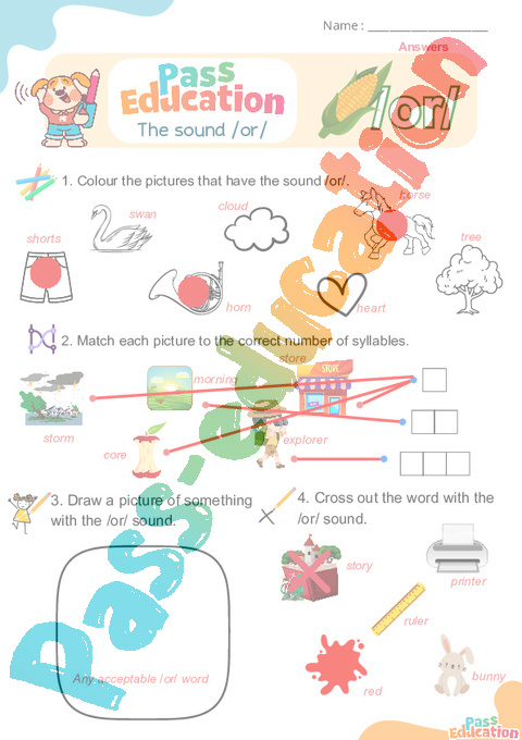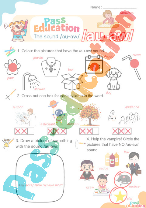 1. Surround the letters that make the sound /ɔː/ in the words.