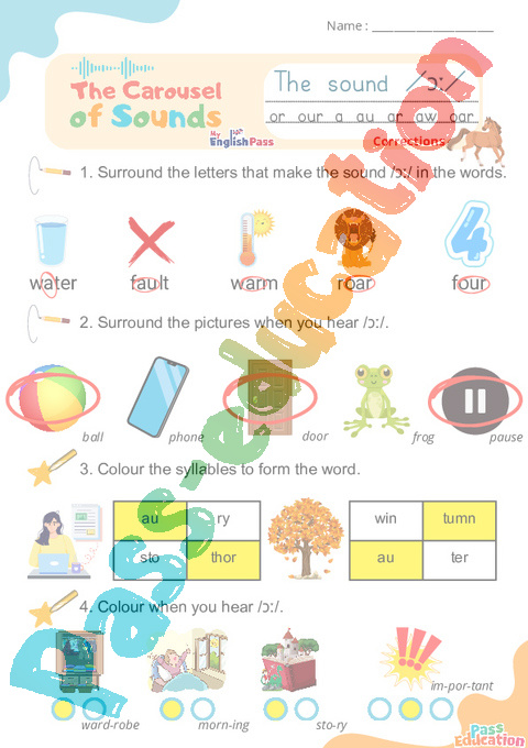 Correction ɔː or our a au ar aw oar – Phonologie anglaise – Carousel of Sounds pdf