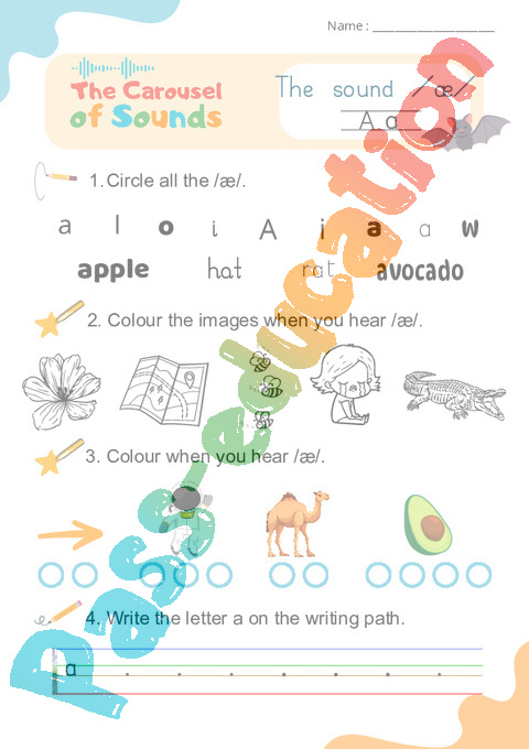 Carousel of Sounds CP CE1 CE2 CM1 CM2 – Vidéo interactive + Fiche sur: /æ/ a – simple.