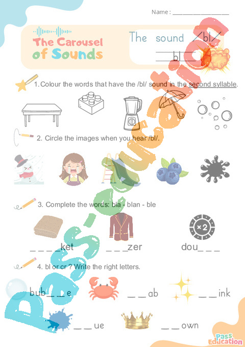 Carousel of Sounds – CP CE1 CE2 CM1 CM2 – Vidéo interactive + Fiche sur le son : /bl/ bl.