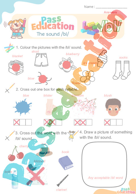 1.Colour the words that have the /bl/ sound in the second syllable.
