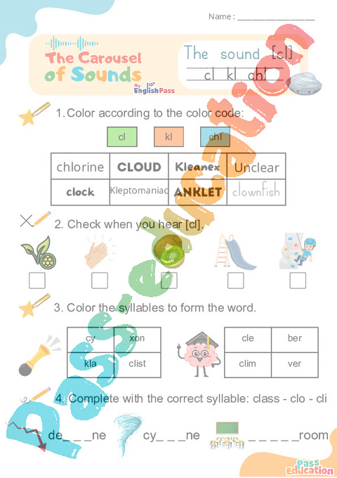 Son [cl] cl kl chl – Phonologie anglaise – Carousel of Sounds – Fiche pdf