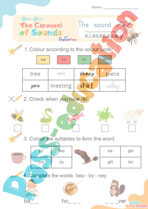 Carousel of Sounds – CP CE1 CE2 CM1 CM2 – Vidéo interactive + Fiche sur le son : /ē/ e i ea ee ey ie y.