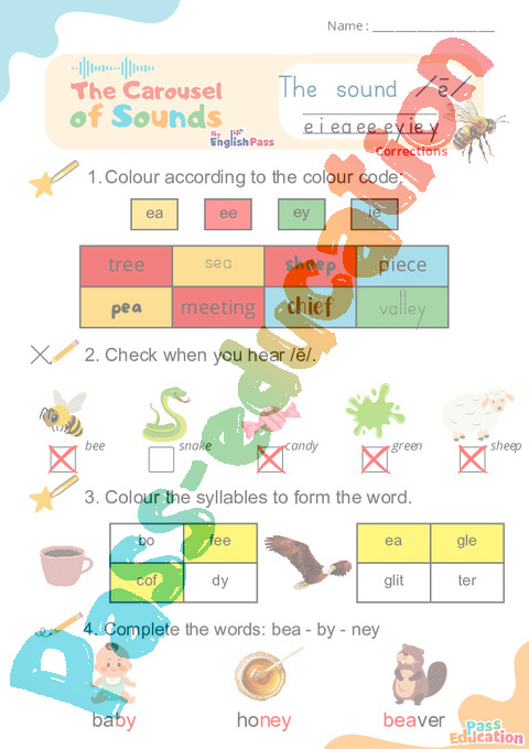 Correction ē e i ea ee ey ie y – Phonologie anglaise – Carousel of Sounds pdf