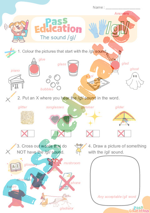 3. Colour when you hear /gl/.