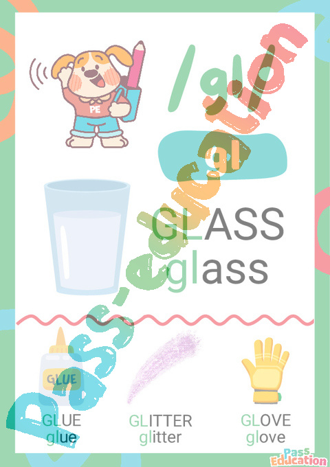 4. Complete the words : gla – glad – glue
