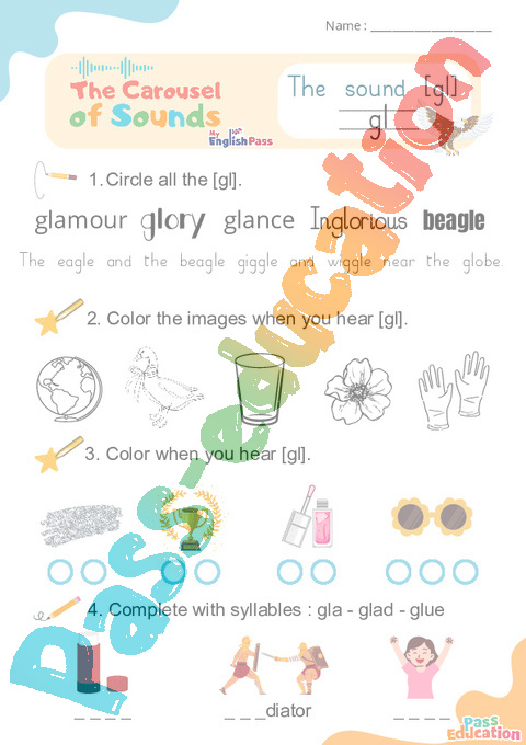 Correction [gl] gl – Phonologie anglaise – Carousel of Sounds – Fiche pdf