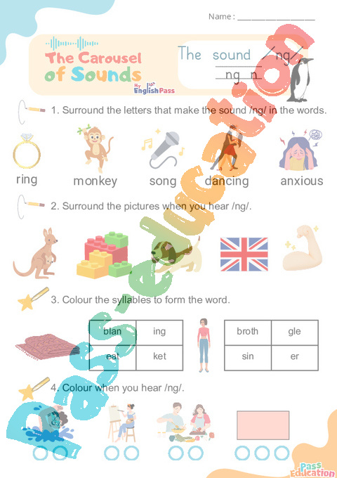 Carousel of Sounds – CP CE1 CE2 CM1 CM2 – Vidéo interactive + Fiche sur le son : /ng/ ng n.