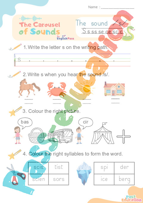 Carousel of Sounds – CP CE1 CE2 CM1 CM2 – Vidéo interactive + Fiche sur : /s/ s ss se c.