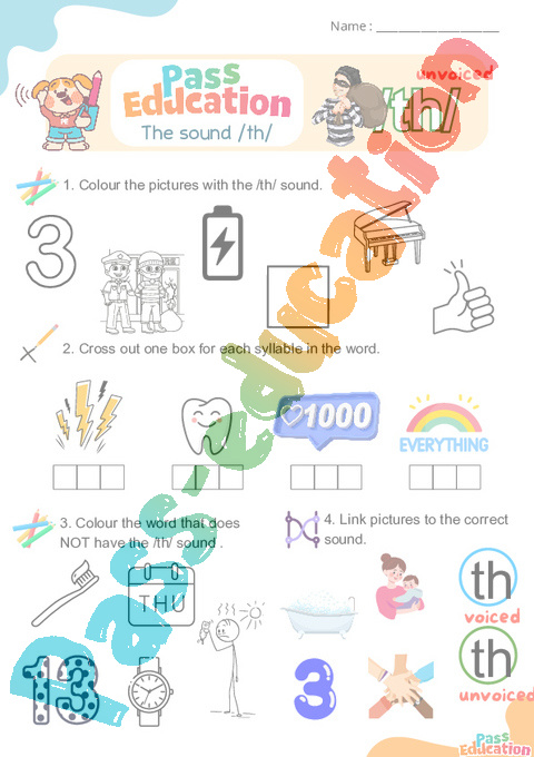 1. Colour the syllables with the sound /th/.