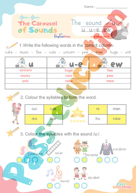 Correction u u u-e ew – Phonologie anglaise – Carousel of Sounds pdf
