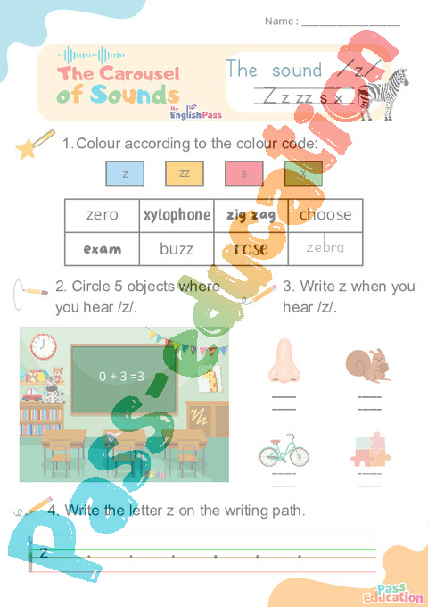 Carousel of Sounds – CP CE1 CE2 CM1 CM2 – Vidéo interactive + Fiche sur le son : /z/ z zz s x.