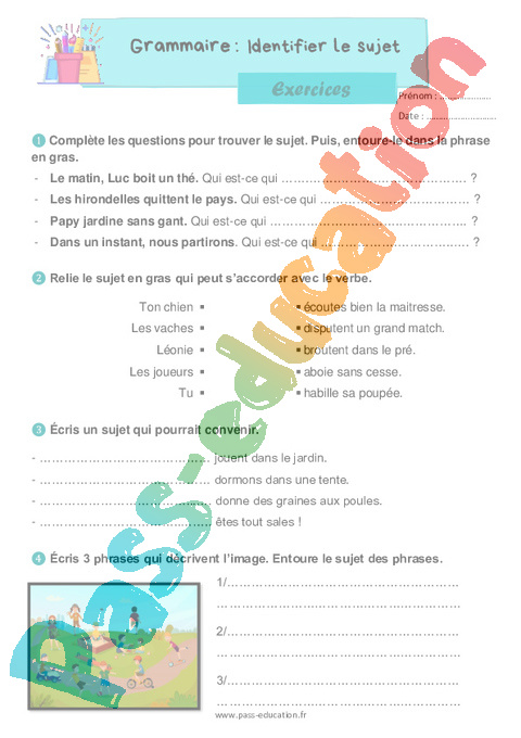 Exercices ce1 Identifier le sujet pdf