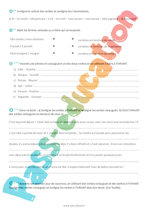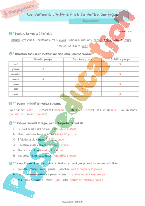 Correction exercices Le verbe à l’infinitif et le verbe conjugué 6ème pdf