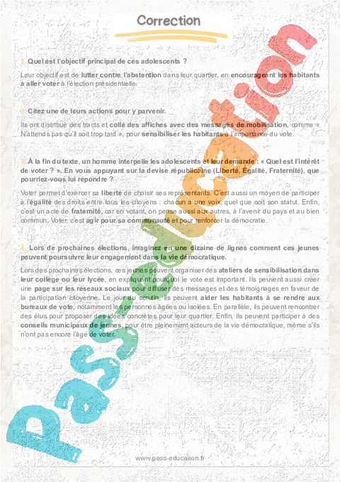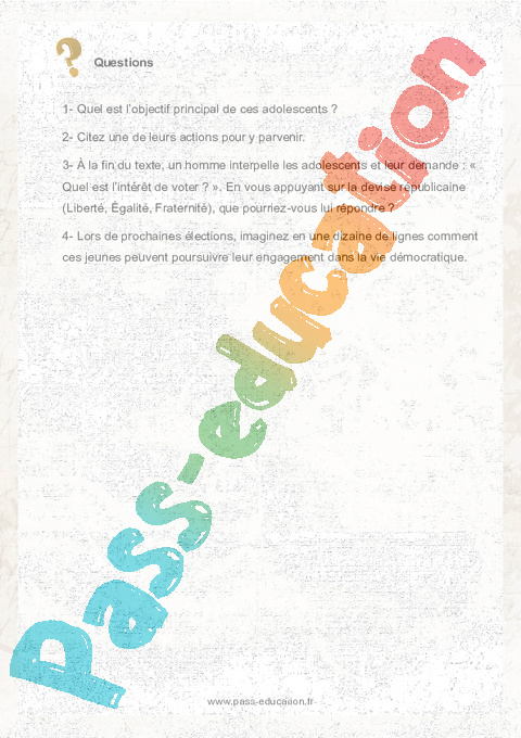 4- Lors de prochaines élections, imaginez en une dizaine de lignes comment ces jeunes peuvent poursuivre leur engagement dans la vie démocratique.