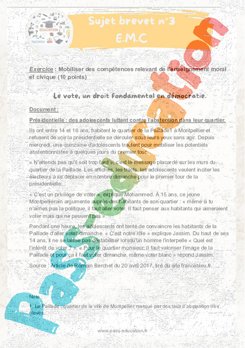 3 Le vote, un droit fondamental en démocratie Sujets et corrigés du Brevet EMC pdf