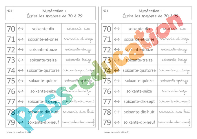 Leçon – Ecrire les nombres de 70 à 79 – Cp – Cycle 2