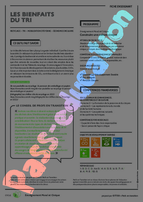 RECYCLAGE – TRI – CM1 CM2 6ème