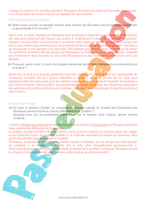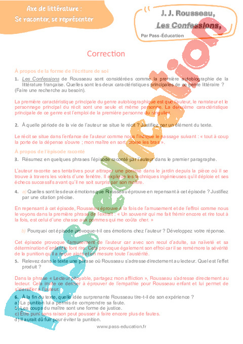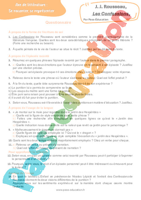 Correction Questionnaire Les Confessions (J. J. Rousseau) – 3ème pdf