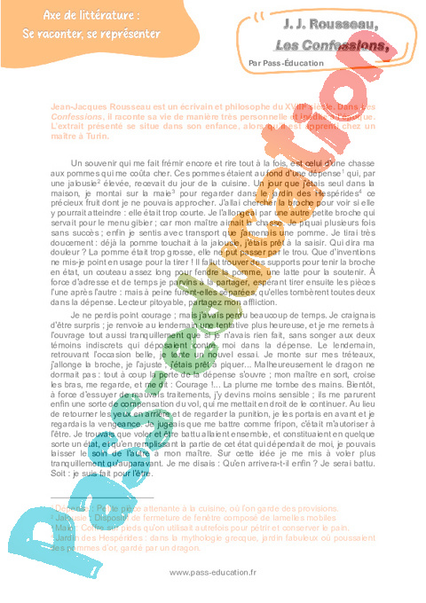 Littérature Les Confessions (J. J. Rousseau) – 3ème pdf