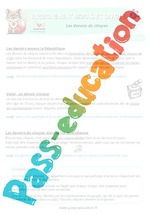 Leçon à imprimer – Les devoirs du citoyen – CM2 – EMC Education morale et civique.