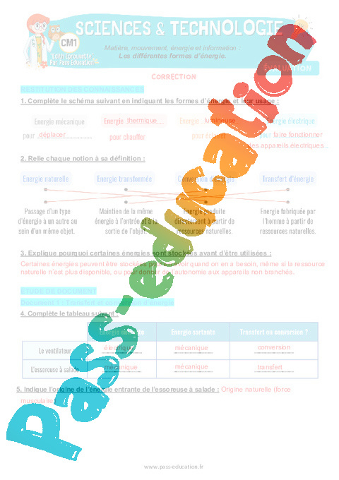 6.1 Correction Evaluation CM1 Les différentes formes d’énergie rtf