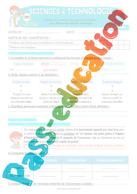 6 Evaluation CM1 Les différentes formes d’énergie pdf