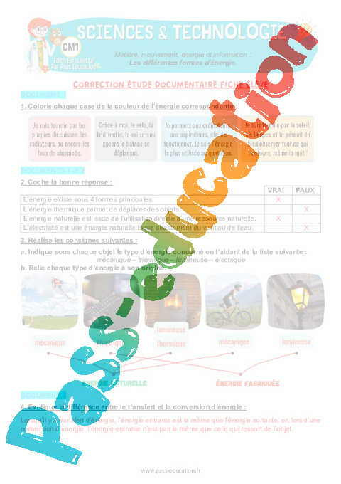 4.1 Correction Fiche Elève CM1 Les différentes formes d’énergie rtf