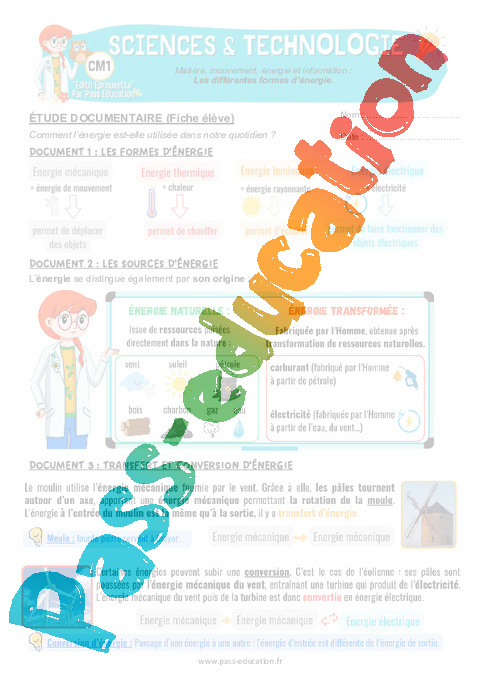 4.1 Correction Fiche Elève CM1 Les différentes formes d’énergie pdf