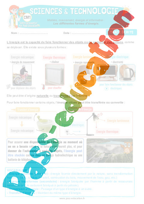 Leçon – Edith Eprouvette au CM1 : Les différentes formes d’énergie