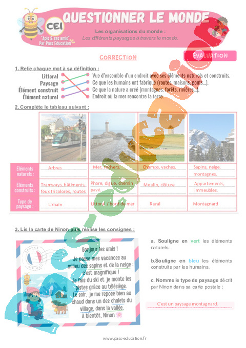 6.1 Correction Evaluation CE1 Les différents paysages à travers le monde pdf