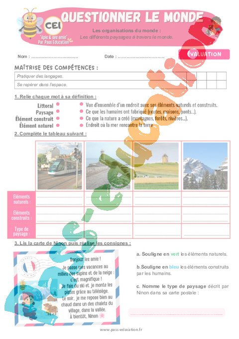 Evaluation – Les différents paysages à travers le monde – CE1 – Séquence + vidéo – Apis & ses amis.