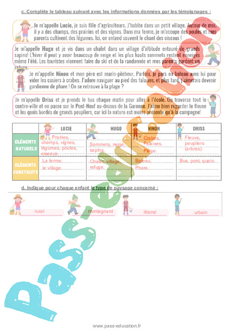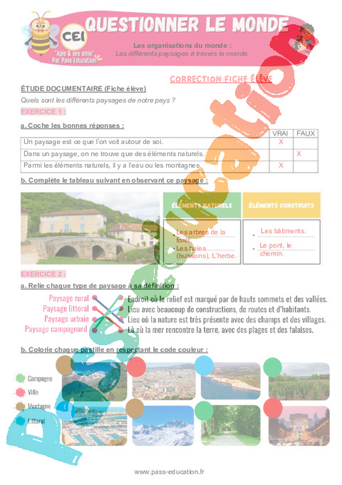 4.1 Correction Fiche Elève CE1 Les différents paysages à travers le monde pdf