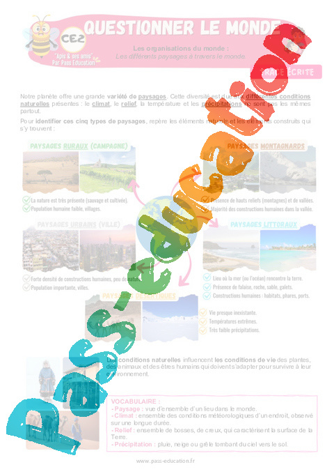 Leçon – Les différents paysages à travers le monde – CE2 – Apis & ses amis.