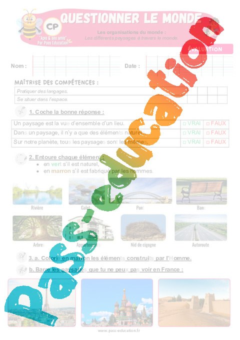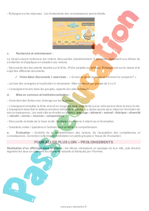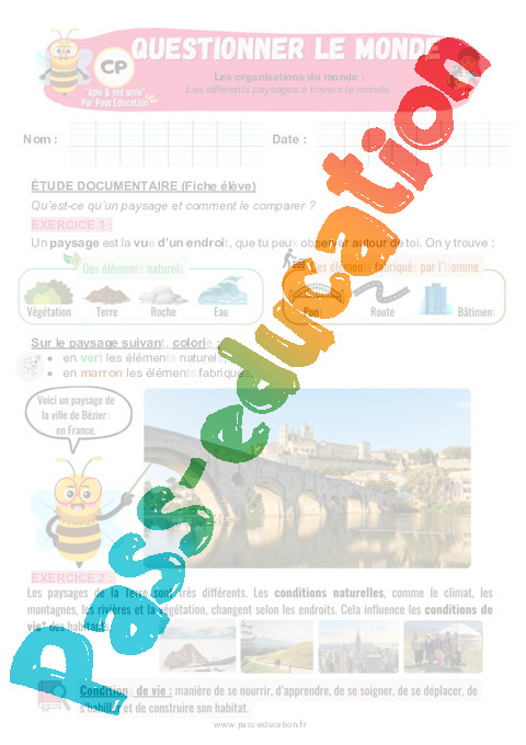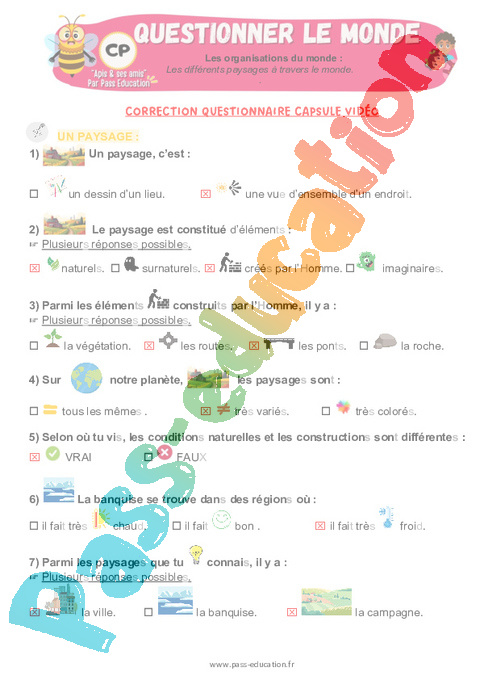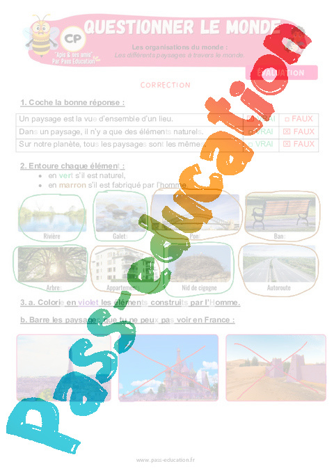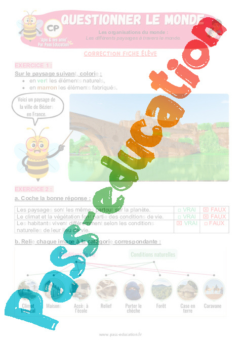 4.2 Correction Fiche Elève CP Les différents paysages à travers le monde pdf