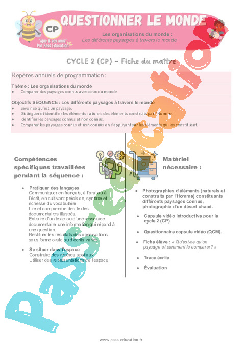 Séquence + vidéo – Les différents paysages à travers le monde – CP – Apis & ses amis.