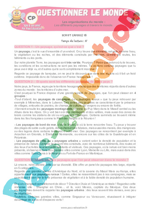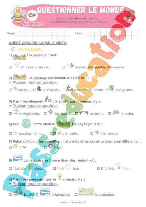 3. QCM capsule vidéo CP Les différents paysages à travers le monde pdf