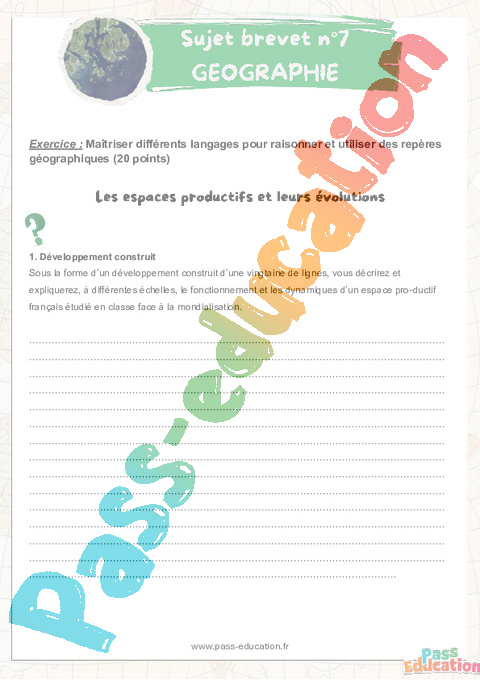 7 Les espaces productifs et leurs évolutions Sujets et corrigés du Brevet Géographie pdf