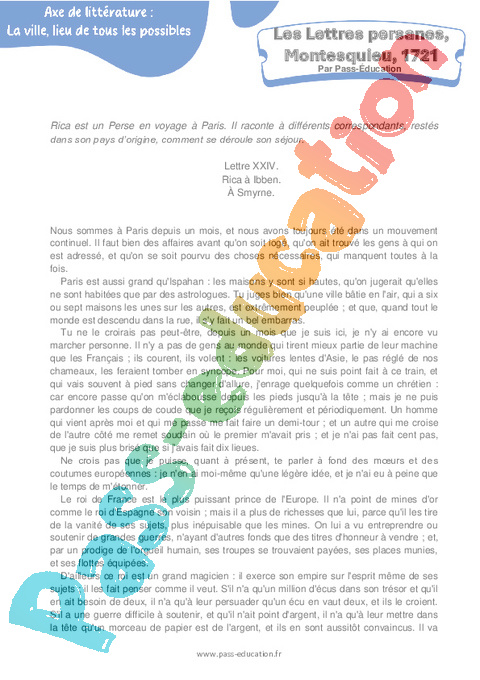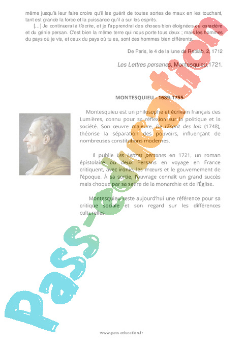 Littérature Les Lettres persanes – 4ème Montesquieu, 1721 – 4ème pdf