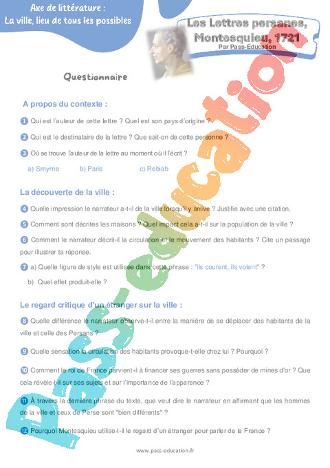 Questionnaire Les Lettres persanes – 4ème Montesquieu, 1721 – 4ème pdf