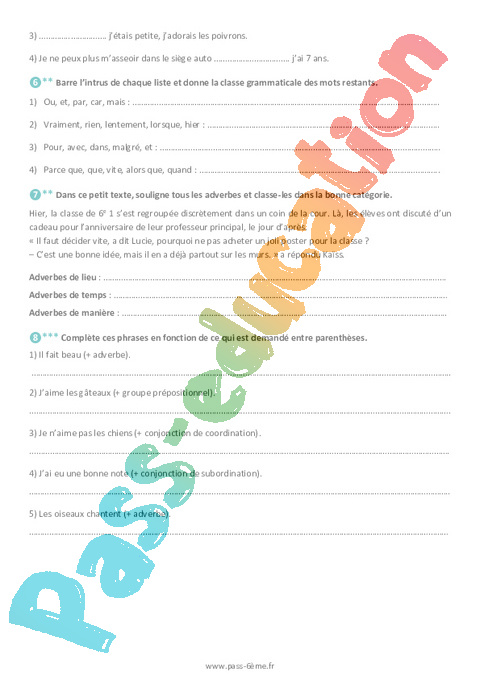 Exercices 6ème Les mots invariables pdf