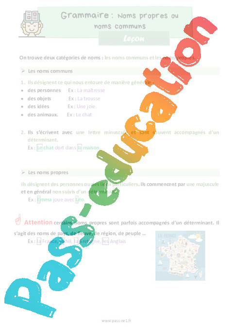 Leçon Les noms communs et noms propres – CE1 pdf