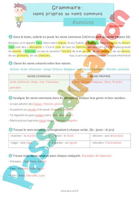 Correction Exercices ce2 Noms propres ou noms communs pdf